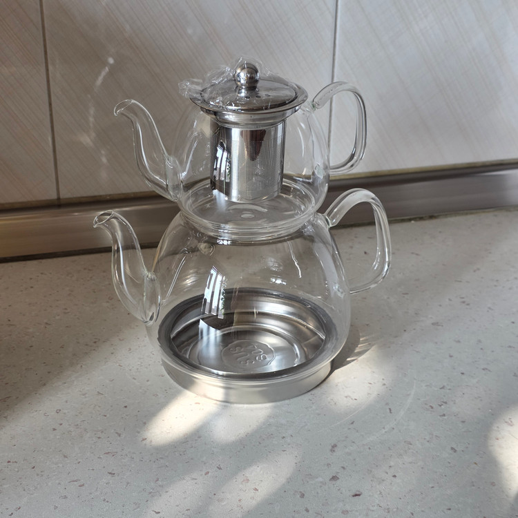 • طراحی دسته ارگونومیک: دستههای شیشهای پهن و متناسب با فرم دست، جابجایی کتری و قوری را حتی در حالت پر و داغ، بسیار ایمن و آسان کرده است.