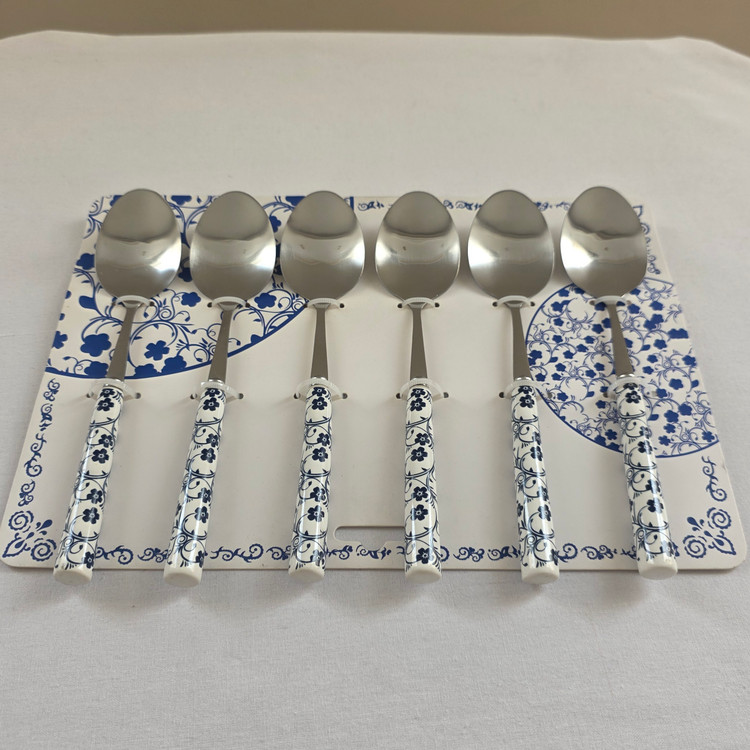 ست قاشق و چنگال غذاخوری دنی هوم (Danny Home) با طراحی نوستالژیک و دستههای طرح چینی. تلفیق استیل ضدزنگ با هنر کلاسیک آبی و سفید. بهترین انتخاب برای میزبانیهای خاص و جهیزیه عروس.