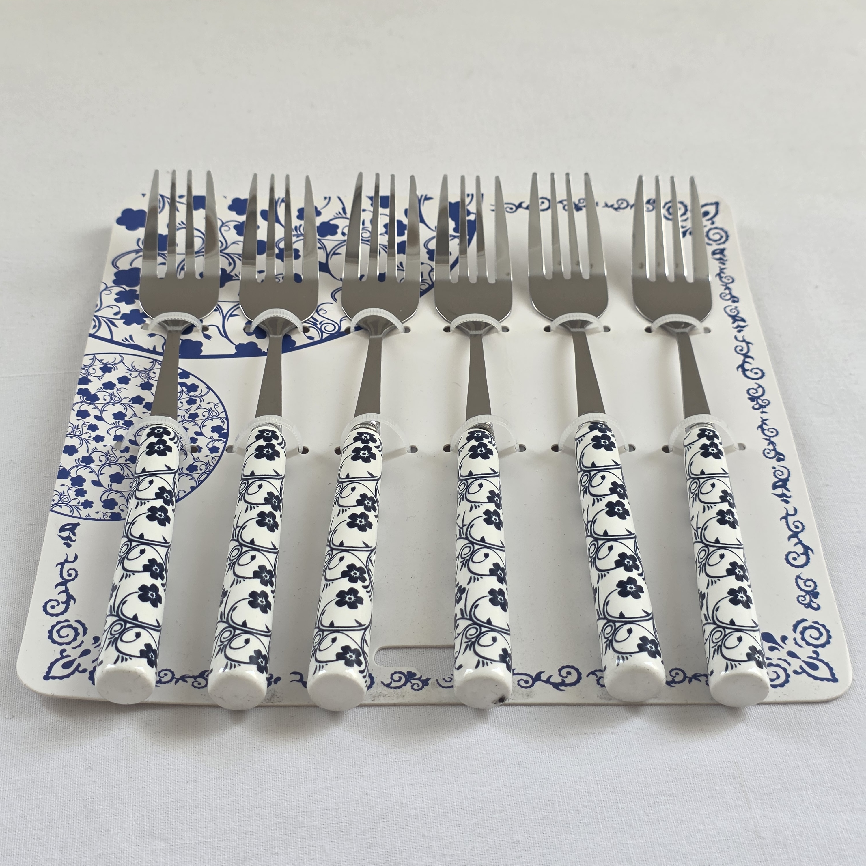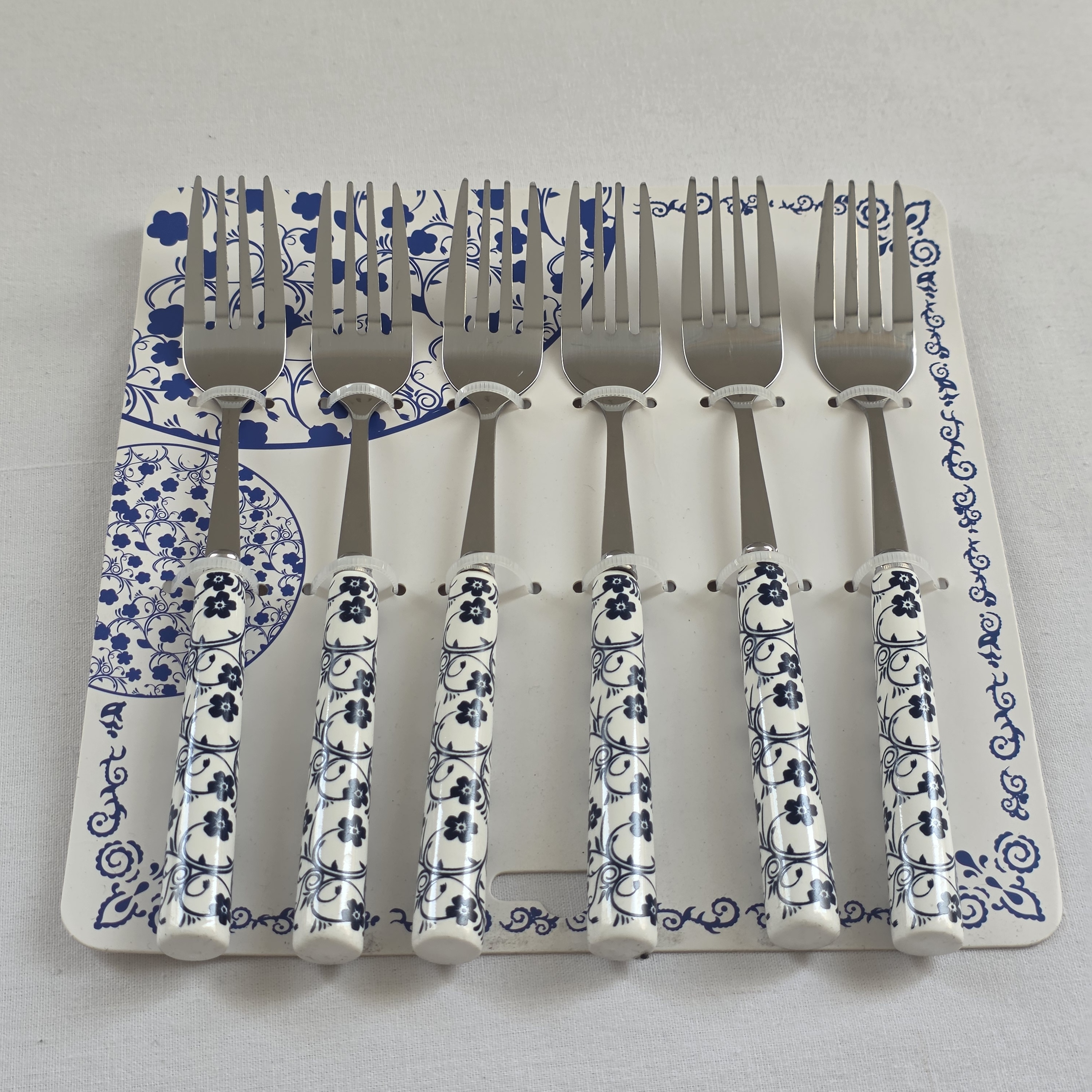ست قاشق و چنگال غذاخوری دنی هوم (Danny Home) با طراحی نوستالژیک و دستههای طرح چینی. تلفیق استیل ضدزنگ با هنر کلاسیک آبی و سفید. بهترین انتخاب برای میزبانیهای خاص و جهیزیه عروس.