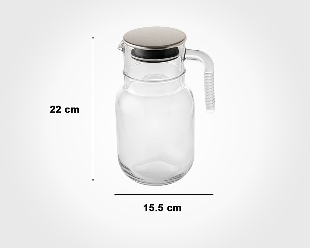 پارچ شیشه ای 1.5 لیتر درب استیل لیمون