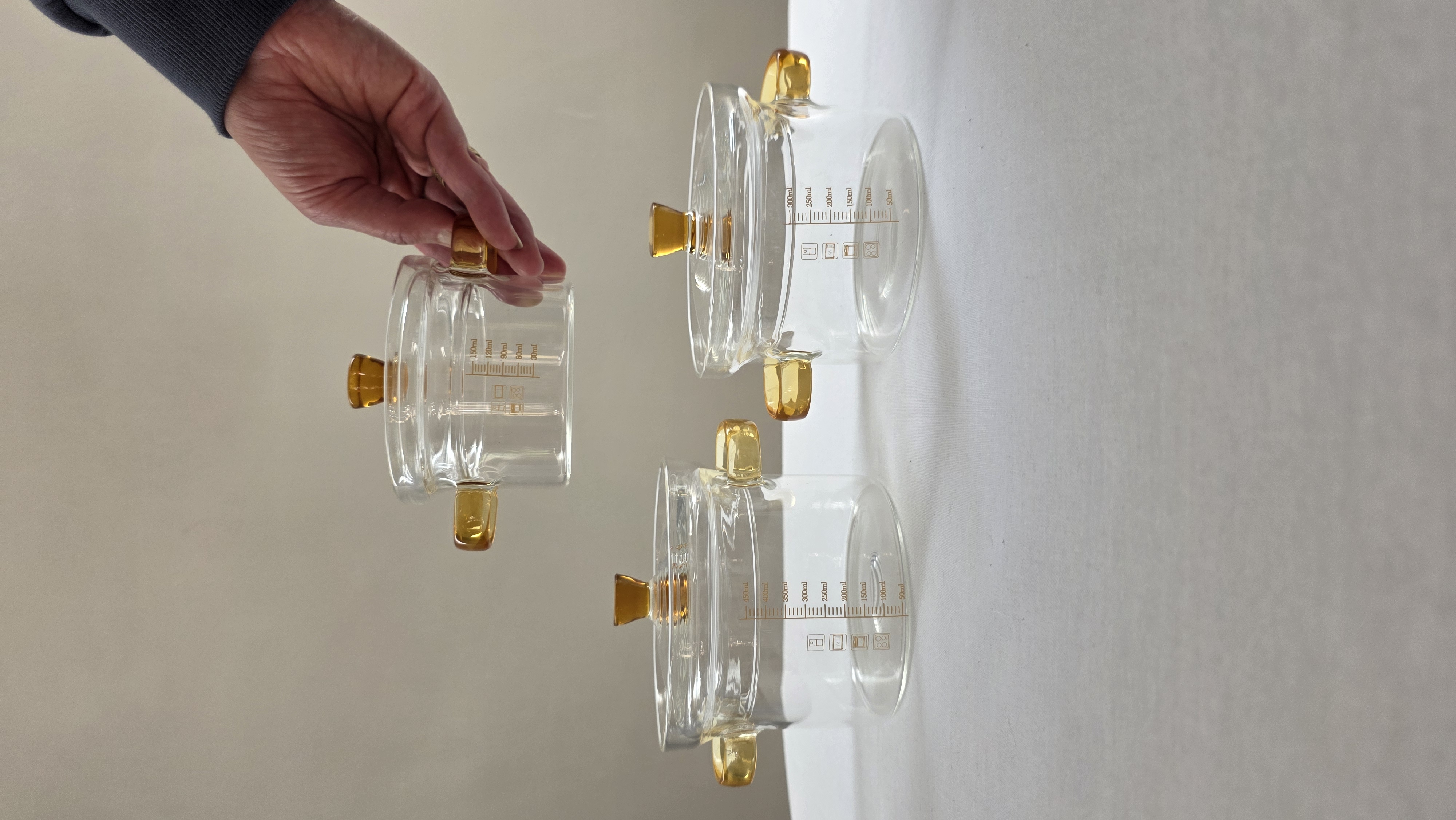 • درجهبندی دقیق محتوا: وجود مدرج میلیلیتر (از 30ml تا 150ml یا بالاتر بسته به سایز) روی بدنه، این ظرف را برای پخت دقیق دسرها، سسها و غذاهای حساس عالی میکند.