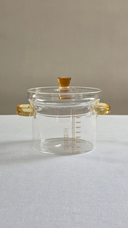 • مقاومت حرارتی بالا (Borosilicate): این ظرف از شیشه بوروسیلیکات ساخته شده که در برابر شوک حرارتی بسیار مقاوم است و قابلیت استفاده مستقیم روی شعله ملایم گاز را دارد.